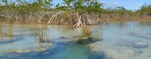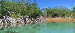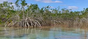 La dernière particularité rare de Bacalar est la présence de Stromatolites. Ce nom barbare cache des concrétions d’allure très banale : elles ressemblent à des rochers ou des platiers coraliens très ternes. Pourtant ces structures que l’on ne remarquerait même pas si les scientifiques ne les avaient repérés, sont vivantes ! Elles représentent tout d’abord nos plus lointains ancêtres connus. Ce sont des cyanobactéries ou algues bleues qui recouvrent la structure et la font croitre, un  peu comme le corail vivant fait croître les récifs par son squelette. Ces premiers êtres vivants connus sur terre apparurent il y a 3,6 milliards d’années. Tous les animaux y compris l’homme sont issus de l’évolution à partir de ces bactéries. Pendant au moins un milliard d’années, les Stromatolites modifièrent considérablement l’atmosphère terrestre en remplaçant par photosynthèse énormément de gaz carbonique par de l’oxygène alors inexistant qui nous permet de respirer aujourd’hui.