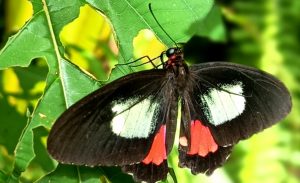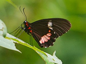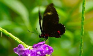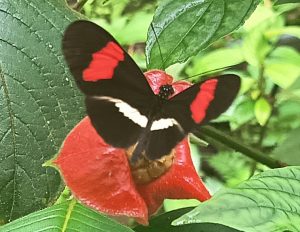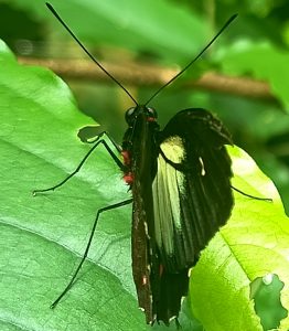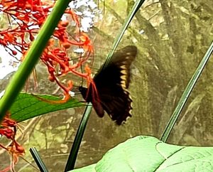 Nous partons le lendemain à 7h30 pour la cascade d’Uvita afin d’y être seuls, ce qui sera effectivement le cas. La cascade n’éclabousse par sa splendeur, mais ce qui nous intéresse surtout, c’est la serre à papillons voisine :