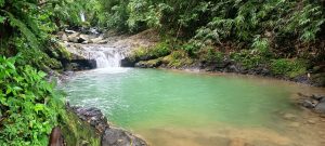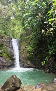 Infos pratiques : Pour voir la cascade, il existe 2 entrées La première se nomme  »Catarata Esmeralda Uvita » et la seconde plus loin et plus haut  »Catarata Uvita ». Les deux semblent gérées par 2 familles différentes et sont reliées par un chemin longeant la rivière. Le prix d’entrée (2000 C) est le même. Comme la situation se semble pas clarifiée entre les deux, nous vous conseillons d’entrer par celle du bas ‘Esmeralda’ où se trouve la serre de papillons. Vous pourrez ensuite remonter jusqu’à la cascade. A l’entrée du haut, l’on nous a affirmé que l’on ne pouvait voir la serre à papillons en bas car elle appartenait à une entité séparée… alors que le chemin descendant le long de la rivière y mène…