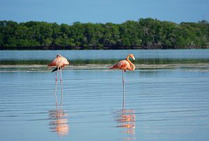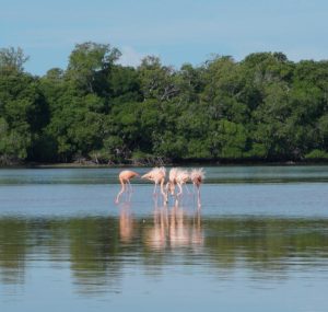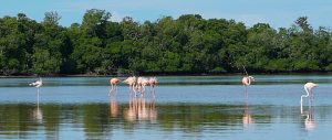 La star incontestée de ces oiseaux est le flamant rose… qui s’avère d’ailleurs pratiquement rouge ici du fait de son alimentation très riche en caroténoïdes contenus dans les crevettes et les algues. Jugez-en, les couleurs des photos sont naturellement… naturelles :