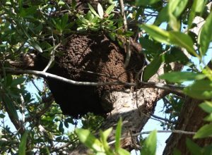 Beaucoup de termitières squattent les troncs des palétuviers, c’est une spécialité d’Amérique Centrale. Nous en avons vu beaucoup des termitières (Australie, Afrique du Sud...) mais jamais nous n’en avions jamais vu dans les arbres. Pour ne rien vous cacher, ce sont des termites Nasutitermes :
