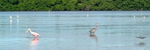 D’ailleurs ici, même les spatules au bec aplati sont roses du fait de leur alimentation, comme les flamants, alors qu’elles sont totalement blanches chez nous (aussi côté gauche) :
