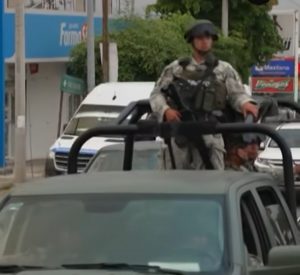 3- Les contrôles de police : Vous verrez beaucoup d’impressionnantes voitures de police ou de militaires circuler ostensiblement armés jusqu’aux dents : Guardia Nacional, Policia Estatal, Policia Federal, Policia Municipal, Armée, vous en aurez pour votre argent. Est-ce pour intimider ? Pour de la Com ?  Il y a beaucoup de contrôles, notamment aux entrées des villes. La plupart du temps, on vous fait plus ou moins signe de passer. Parfois on vous arrête, parfois, on vous fait ouvrir le coffre. Une fois, on nous a demandé de l’argent.