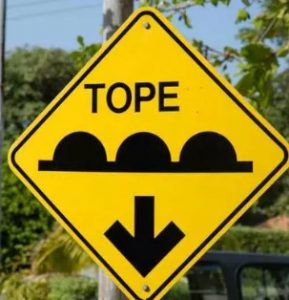 Vous ne l’avez pas trouvé ? C’est normal, il n’y est pas. Non seulement beaucoup de Topes ne sont pas signalés, mais certains sont signalés alors qu’ils n’existent pas ! Assez souvent, trop content de voir un Tope signalé, vous ralentissez… et il n’y a rien. Il arrive souvent que le Tope soit enlevé (probablement parce qu’il y a eu un accident grave)… mais pas le panneau !