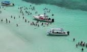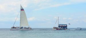 Quand nous avons vu des dizaines et des dizaines de bateaux surchargés (ci-dessous) longer à fond la côte sous nos yeux pour déposer en snorkeling des milliers de personnes par jour au même endroit, nous nous sommes dit que nous ne pouvions participer à ce désastre écologique. Car en plus, pour que les quelques poissons et raies présents ne fuient pas devant l’invasion, ils sont nourris !