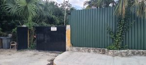 Nous allons donc faire du snorkeling depuis la côte. Mais c’est oublier que la loi du profit s’applique ici sans aucune limite : la côte abritant les plages est TOTALEMENT privatisée. Les hôtels de luxe s’y succèdent et c’est pire qu’à Tulum pour parvenir à atteindre la mer. Quelques rares bars / beach clubs veulent bien vous laisser accéder à  »leur » plage moyennant 20 €.  Mais ils n’ouvrent qu’entre 10 et 17 h pour les croisiéristes et vous vous retrouvez au milieu d’une nuée d’Américains qui pataugent émerveillés en nourrissant quelques poissons d’apparat. Nous n’avons trouvé qu’avec un peu de chance une porte dérobée qui permet de se baigner en toute sérénité et sans sz faire détrousser. La voici, à droite des poubelles… Elle ne perdurera pas des années car elle longe un hôtel désaffecté qui retrouvera un jour un investisseur :