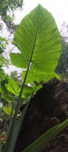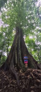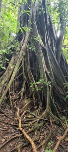…  des lianes énormes enroulées autour d’un tronc puis zigzagant dans le vide, des arbres énormes, des feuilles énormes… On se sent petit :