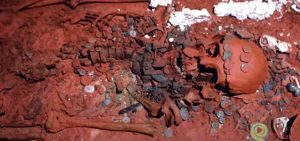 Il est possible de pénétrer dans la pyramide abritant sa tombe (ci-contre). Après des semaines de travail suite à la découverte d’une entrée dans la pyramide, l’équipe de fouille a fini par découvrir la tombe en prenant des risques. Il était 23h. Après concertation, ils décidèrent de poursuivre car ils pressentaient une grande découverte. A 4h30 du matin, ils parviennent à ouvrir la dalle et découvrent ceci. Attention âmes sensibles s’abstenir. Les photos proviennent du web, le mussée où est exposée la reine rouge était en réparation lors de notre passage.