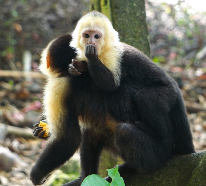 6 Décembre 2025 : Le parc Manuel Antonio, proche de la ville de Quepos, est le paradis des singes. Vous verrez assez facilement les 3 espèces de singes vivant au Costa Rica. D’abord les inévitables capucins à tête blanche. Ils sont nombreux et peu farouches, vous ne pourrez pas les manquer. Vous pourrez les observer sans vous lasser pendant des heures, dans le Parc, ou à l’extérieur (au bout de la plage Espadilla côté Parc par exemple). Avec leur bouilles si humaines et leurs comportements si espiègles, entre eux, et avec les humains : ne laissez surtout pas votre sac sans surveillance sur la plage. Ils guettent en permanence, et dès qu’une opportunité se présente, ils ouvrent les fermetures des sacs pour y piquer ce qui les intéresse.
