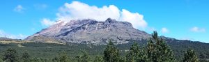 Nous atteignons plus rapidement qu’espéré les 3600 m du Paseo del Cortès grâce à l’Uber d’Omar depuis le Terminal de Bus d’Amecameca. Et là, miracle, les 2 volcans se dévoilent de près, à droite sa majesté Le Popocatépetl :