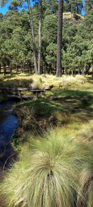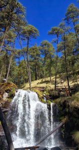 Compte-tenu de la météo plus clémente que prévu pour le moment, nous nous arrangeons avec Omar pour qu’il nous amène au départ du sentier de la cascade d’Apatlaco. Sur les cartes, la route que nous avons empruntée pour monter au col redescend de l’autre côté vers la cascade. Or elle devient d’un coup une piste défoncée. Omar nous confirme ce que nous pensions tout bas : la corruption a fait que les crédits destinés à la route sont passés dans les poches des élus et responsables. Nous avions déjà rencontré ce phénomène sur la route menant à Cabo Pulmo en Basse Californie lorsque la route s’est arrêtée d’un coup au milieu de nulle part. Nous parvenons tant bien que mal en 1/2h au bout des 5km de piste. Départ pour une petite randonnée jusqu’à la cascade d’Apatlaco. La balade vaut surtout par le chemin dans une nature originale dans un cadre grandiose, plutôt que par la cascade en elle-même :
