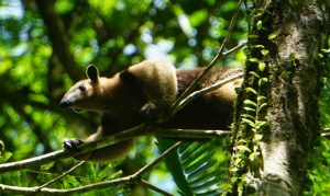 Etonnamment, nous ne verrons pas un seul oiseau dans cette réserve, alors que nous étions presque envahis devant notre petite maison dans la forêt. Nous ne verrons aucun gros animal non plus…. sauf une rareté étonnante :  un Oso Hormiguero ou Fourmiller. Il ne s’agit pas tout de même du Fourmiller Géant (ci-dessous) qui ne peut s’admirer quasiment que dans le Pantanal au Brésil. Ceux du Costa Rica ont semble-t-il disparu. Les derniers aperçus l’auraient été dans cette réserve de Tirimbina.
