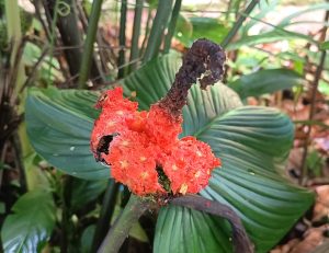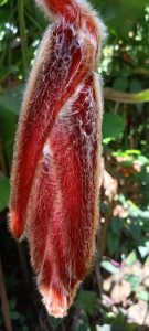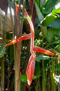 Avez-vous déjà vu un balisier à poils ? Autrement dit, cette fleur classique des bouquets tropicaux (ci-dessous à l’entrée de la réserve), peut-elle être pourvue de poils ?