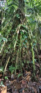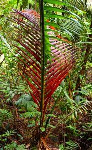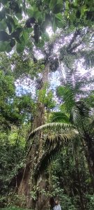 Cette rainforest continue de nous impressionner malgré la rareté des animaux. Avec ces arbres à racines apparentes, ce Coiba à la fois énorme et immense (au centre ci-dssous), et ces palmiers dont une seule palme est rouge, toues les autres restant vertes.