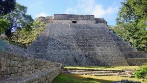 De face, elle ressemble à la grande pyramide El Castillo, star de Chichen Itza. Mais dès que l’on amorce quelques pas sur le côté, on comprend que sa forme arrondie est unique dans le monde Maya.