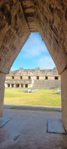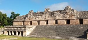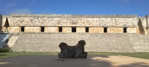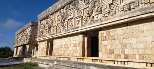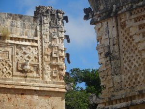 Les sculptures des frontons des 4 côtés impressionnent. Comme à Chichen Itza, aucune nonne n’a vécu ici naturellement. La taille des pièces a fait penser aux découvreurs qu’il s’agissait de cellules de religieuses :