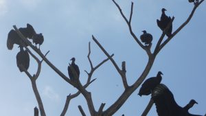 Valladolid n’est pas nom plus au top de l’écologique. En rentrant à notre hébergement, guidés par Google Maps,  nous prenons une route qui se dégrade de plus en plus, se couvre de nids de poules. Dans le ciel, un autre genre d’oiseaux commence à pulluler. Ce sont des vautours appelés ici ‘Zopilotes’ ou ‘Chom’ en Maya :