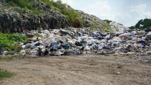 Et nous comprenons vite pourquoi : la route s’est faite carrément coupée par l’immense décharge à ciel ouvert de la ville. Elle s’appelle probablement « Au bonheur des charognards »  car des centaines de vautour nous observent. Voient-ils en nous un futur potentiel repas ? Nous rebroussons chemin vite fait.