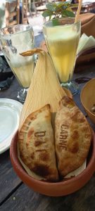 Une excellente adresse tenue par un jeune couple Argentin dans la rue la plus ‘chic’ de Valladolid, la Calzada de los Frailes : ‘ Tres van bien ‘. Parmi les meilleures empanadas (tortilla grillée fourrée au jambon, queso (même du roquefort)… Excellents jus de fruits également. Le tout servi dans un très agréable patio en arrière-cour à des  prix très raisonnables : 60 Pesos soit 3 € pour une empanada.