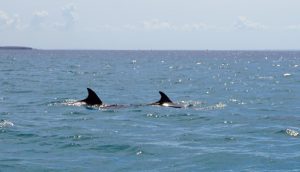 5 Octobre 2025 : Après avoir nagé avec les otaries, nous traversons le canal entre la plage Tecolote et l’île Espiritu Santo en une vingtaine de minutes. A peu près au milieu, nous croisons un petit groupe de dauphins, rencontre toujours sympathique :