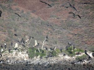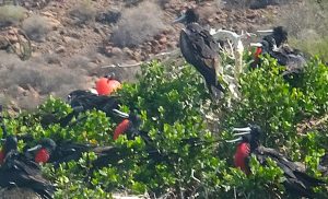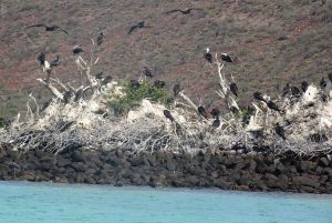 Puis nous rejoignons une anse qui abrite une aire de reproduction de frégates superbes. Cet oiseau nous a toujours fasciné : d’abord par son design en vol très fin pour plus d’un mètre d’envergure.