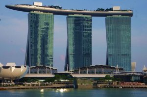 Hotel Marina Bay Sands – Singapour : ouvert en 2010, il est l’hôtel de tous les records : Le plus cher du monde (7 milliards US $), abritant le plus grand casino à atrium du monde (1 600 machines à sous) et la plus grande piscine à débordement du monde (150 m soit 3 piscines olympiques !) sur la plateforme sur le toit. Le complexe comprend un hôtel de 2 561 chambres, un centre de convention et d’exposition de 120 000 m2, un centre commercial de 74 000 m2, etc…